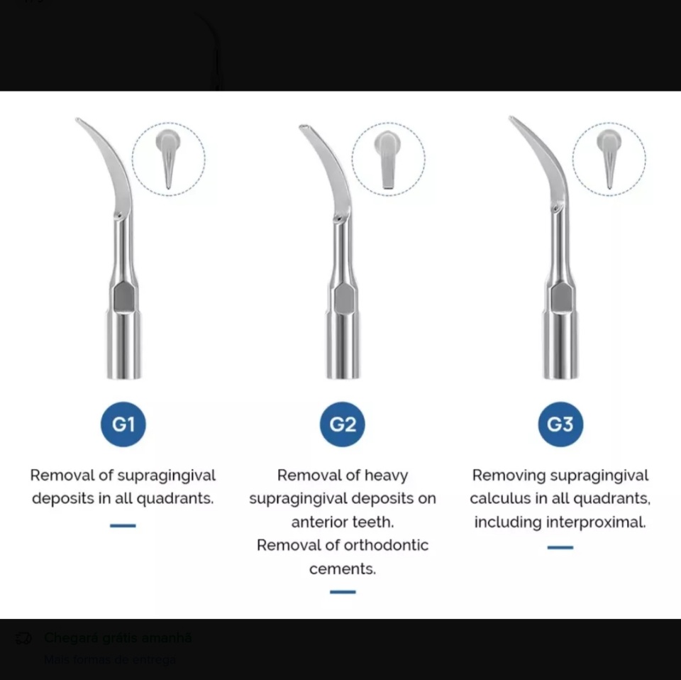 Tipo de movimento: Elíptico (para remoção de tártaro e biofilme)